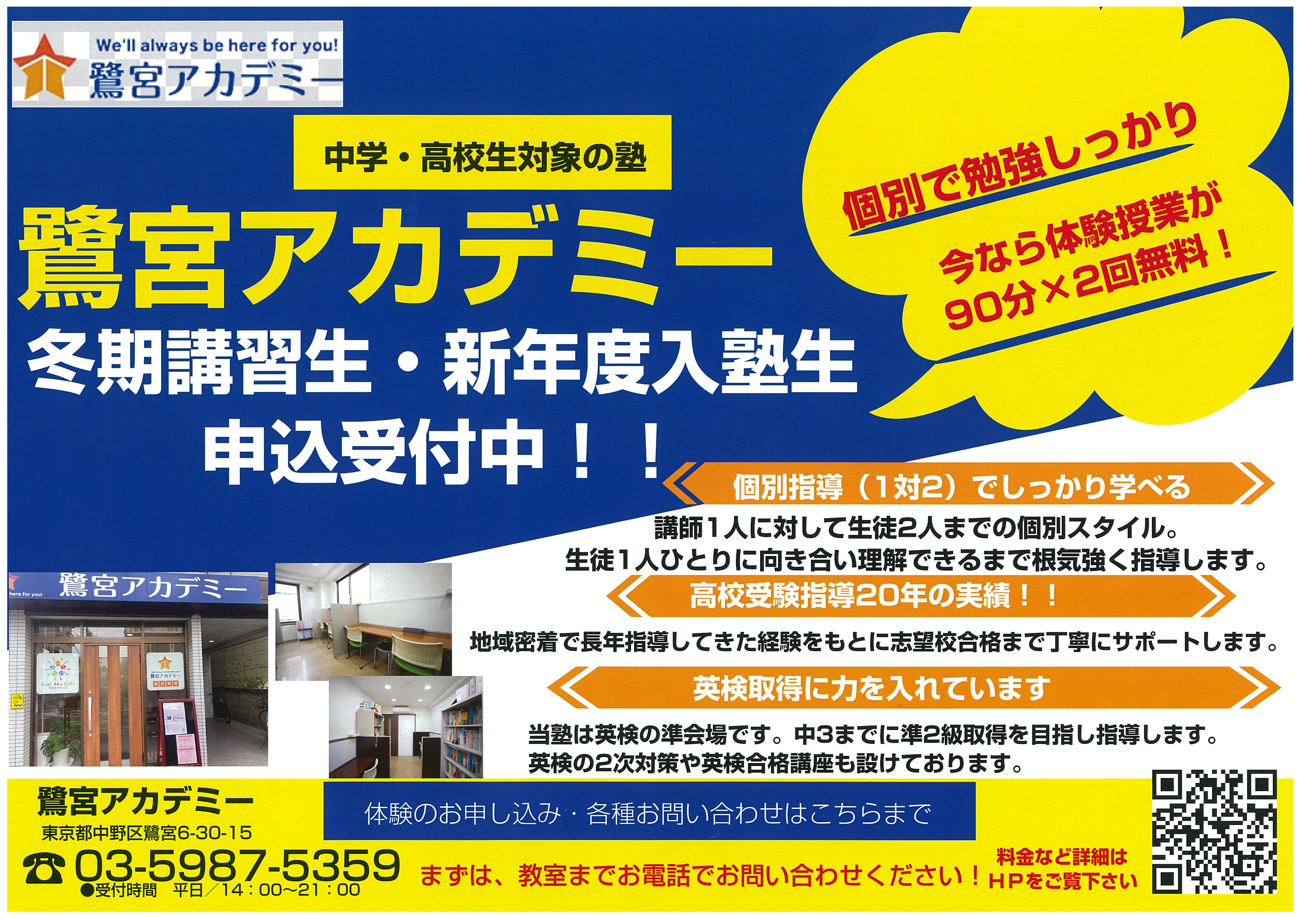 鷺宮アカデミーでは、完全個別指導が体験できる無料体験授業を行っております。
